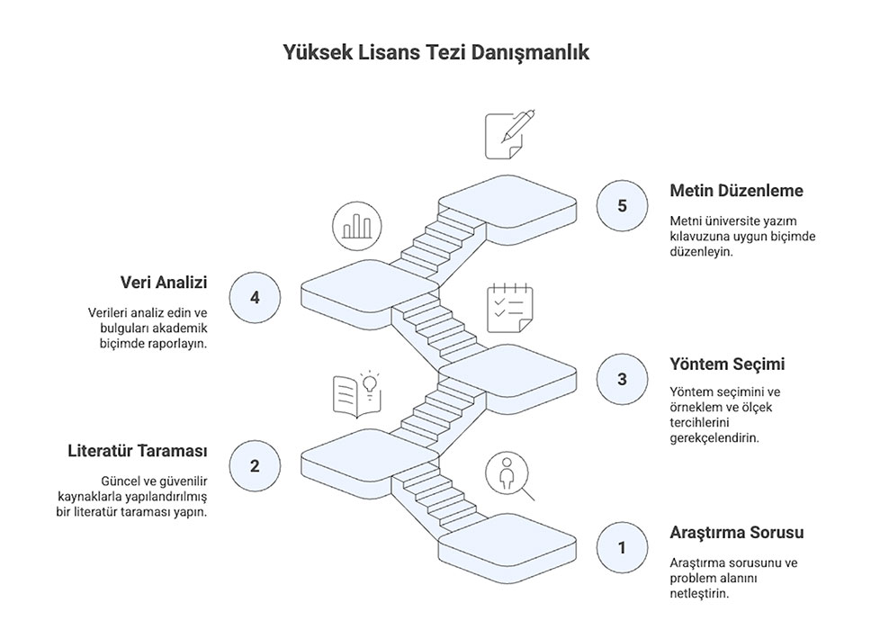 Yüksek lisans düzeyindeki tez çalışmalarında amaç, araştırma alanını doğru tanımlayan, literatürle tutarlı ve metodolojik açıdan gerekçelendirilmiş bir çalışma ortaya koymaktır. Bu kapsamda: